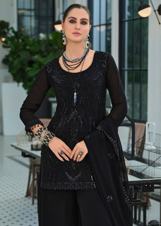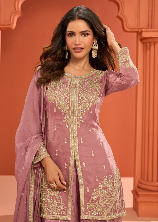 Party Wear Rose Pink Handwork Embroidered Palazzo Suit