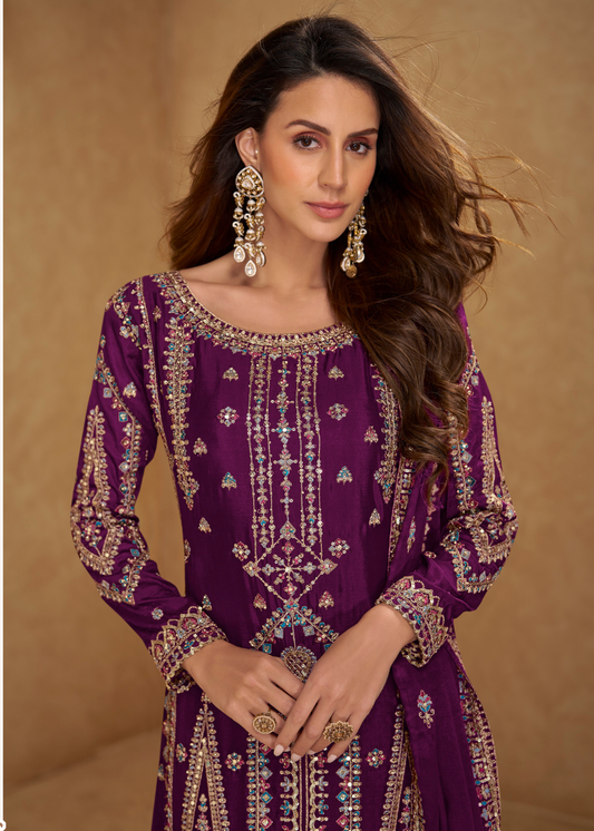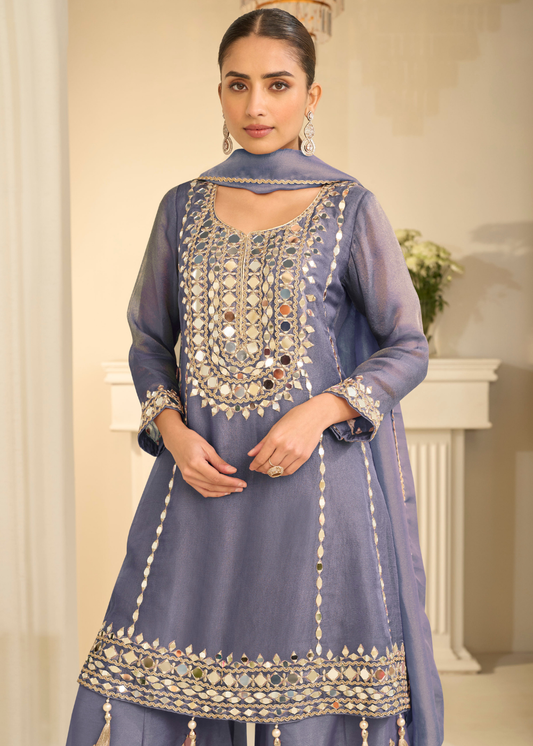 Party Wear Lavender Handwork Embroidered Palazzo Suit