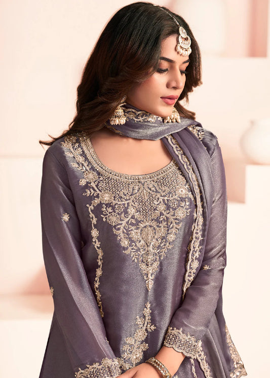 Designer Sage Green Embroidered Silk Palazzo Suit With Dupatta for Wedding and Reception