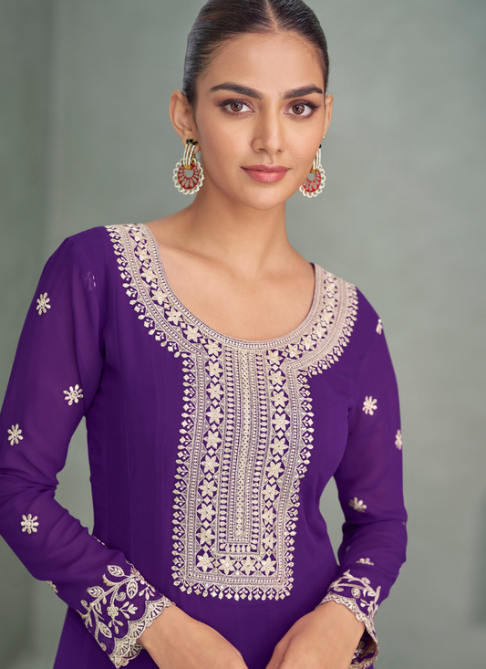 Purple Georgette Embroidered Anarkali Suit with Dupatta for Pakistani Weddings and Indian Festivals