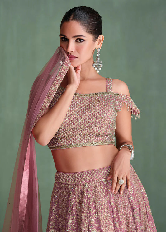 Stylish Pink Georgette Lehenga Choli with Embroidery for Parties