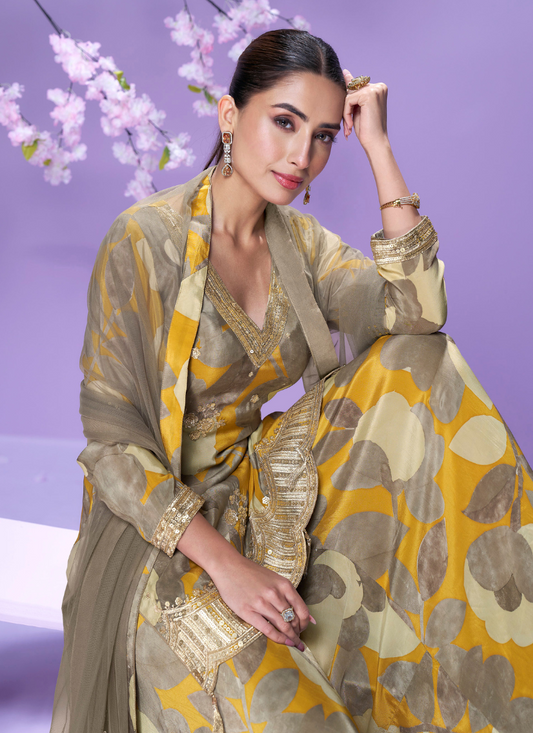 Yellow and Grey Chinon Silk Palazzo Suit For Indian Wedding and Pakistani FestivalRegular price From $214.00 CADRegular priceUnit price / per$770.00 CADSale price From $214.00 CADSale