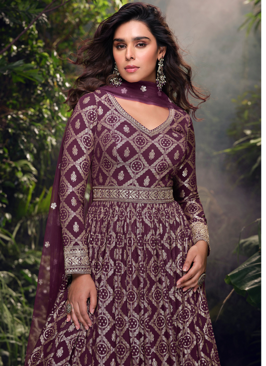 Wine Jacquard Silk Embroidered Anarkali Gown with Dupatta for Indian Wedding and Pakistani FestivalRegular price From $204.00 CADRegular priceUnit price / per$235.00 CADSale price From $204.00 CADSale