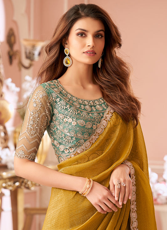 Yellow Georgette Saree with Designer Blouse- Ready to Wear option for Indian Festival and Pakistani WeddingRegular price $196.00 CADRegular priceUnit price / per$391.00 CADSale price $196.00 CADSold out