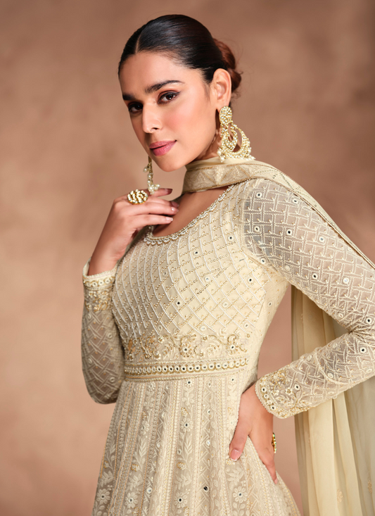 Off White Chikankari Embroidered Anarkali Gown with Dupatta – Perfect for Indian and Pakistani Wedding