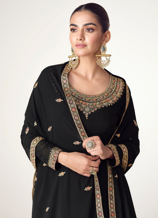 Black Georgette Embroidered Anarkali Gown with Dupatta for Indian Wedding and Pakistani Festival