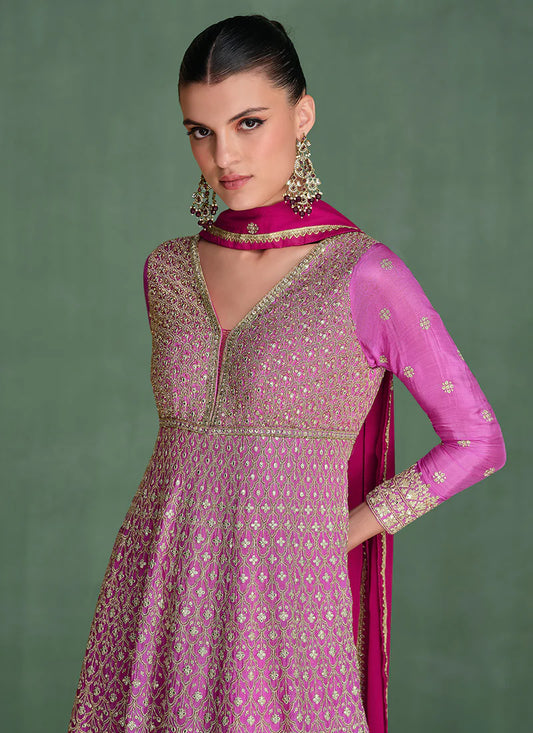 Magenta Pink Anarkali Suit with Dupatta for for Indian and Pakistani Celebrations-Golden Embroidery and Thread WorksRegular price $218.00 CADRegular priceUnit price / per$235.00 CADSale price $218.00 CADSale