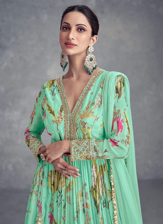 Sea Green Anarkali Gown with Digital Prints and Lavish Handwork EmbroideryRegular price From $201.00 CADRegular priceUnit price / per$257.00 CADSale price From $201.00 CADSale