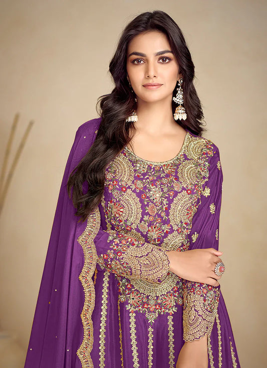 Purple Chinnon Embroidered Salwar Kameez with Dupatta – Perfect for Indian and Pakistani WeddingsRegular price From $194.00 CADRegular priceUnit price / per$224.00 CADSale price From $194.00 CADSold out