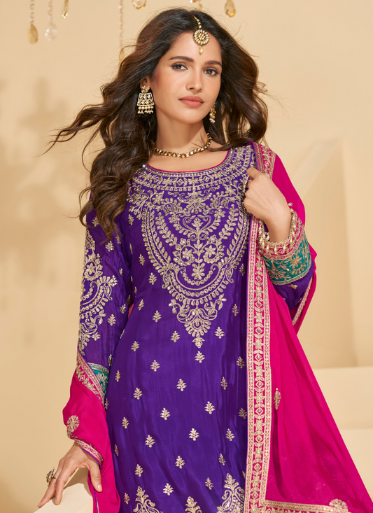 Designer Purple Simar Silk Sharara Suit with Reshamkari Embroidery For Indian FestivalRegular price From $218.00 CADRegular priceUnit price / per$979.00 CADSale price From $218.00 CADSale