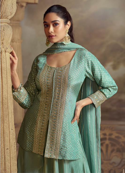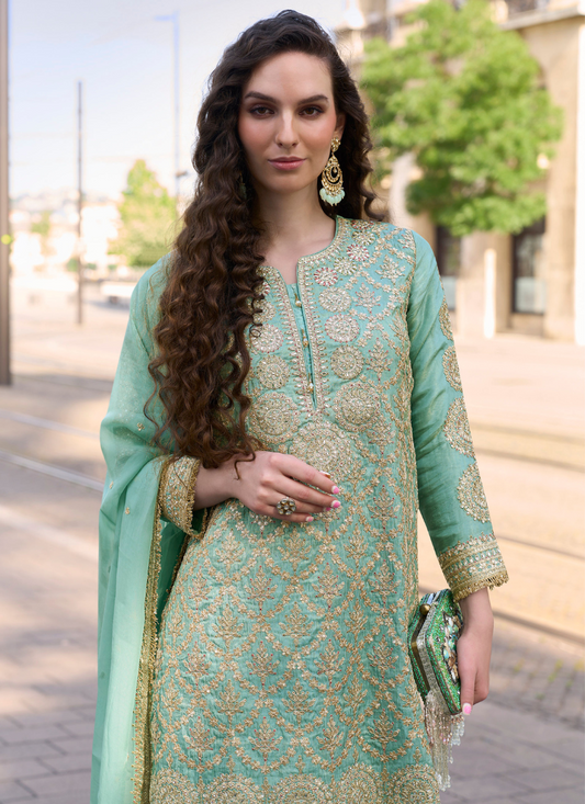 Mint Green Roman Silk Long Kurta Palazzo Suit for Indian Wedding and Pakistani FestivalRegular price From $218.00 CADRegular priceUnit price / per$979.00 CADSale price From $218.00 CADSale