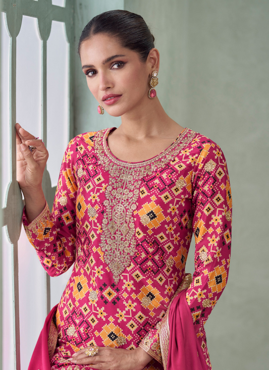 Magenta Pink Embroidered Chinon Sharara Suit with Dupatta for Indian WeddingsRegular price From $218.00 CADRegular priceUnit price / per$979.00 CADSale price From $218.00 CADSale