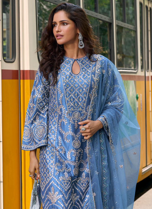 Blue Simar Silk Salwar Suit with Dupatta for Indian Wedding and Pakistani FestivalRegular price From $223.00 CADRegular priceUnit price / per$909.00 CADSale price From $223.00 CADSale