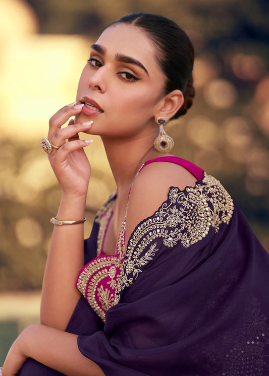 Elegant Pink and Purple Chinon Cape Style Palazzo Suit with EmbroideryRegular price From $216.00 CADRegular priceUnit price / per$923.00 CADSale price From $216.00 CADSale