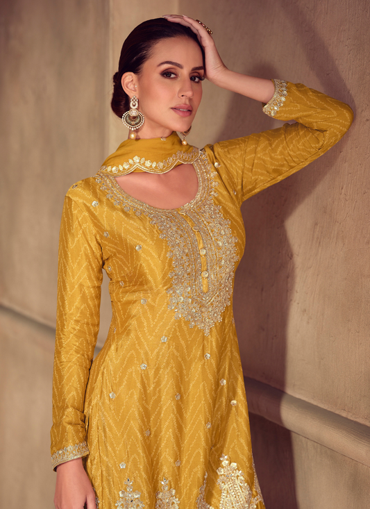 Mustard Yellow Chinon Silk Sharara Suit with Dupatta – Indian Pakistani Mehendi & Festival WearRegular price From $211.00 CADRegular priceUnit price / per$770.00 CADSale price From $211.00 CADSale