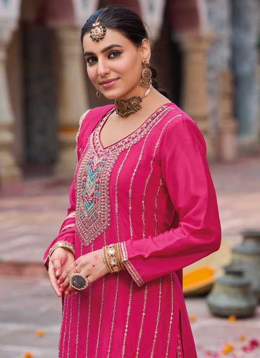 Designer Magenta Gharara Suit with Intricate Embroidery