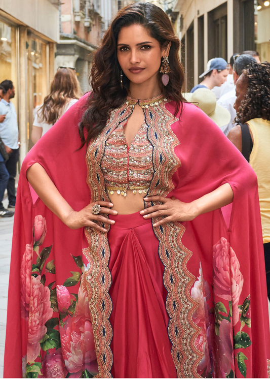 The sharara suit features wide-legged, flared pants that start at the waist and flow down seamlessly, creating a graceful and elegant look. Paired with a beautifully embellished kameez (top), a dupattas (scarf), and flattering sharara bottoms that are tight at the thighs and flare out at the bottom, this outfit exudes modern charm while retaining its traditional essence. It’s an ideal choice for Eid, weddings, and festive occasions, embraced by women worldwide for its fluidity and beauty.