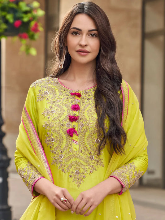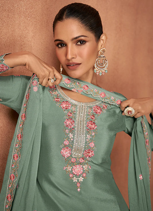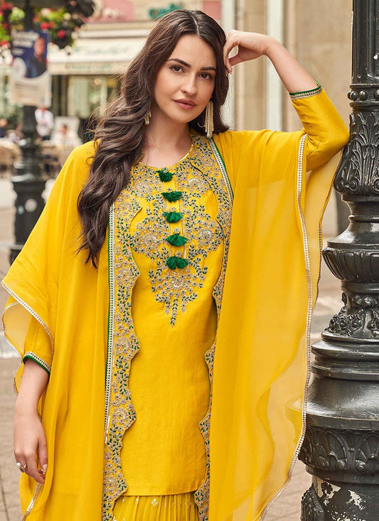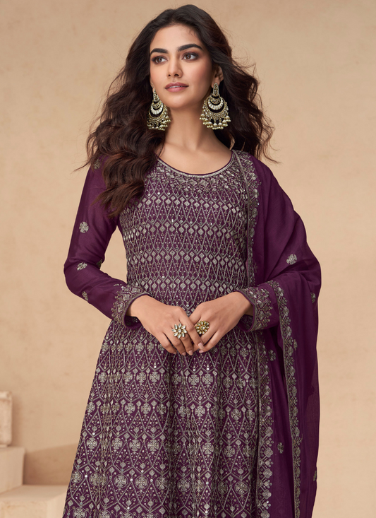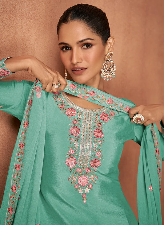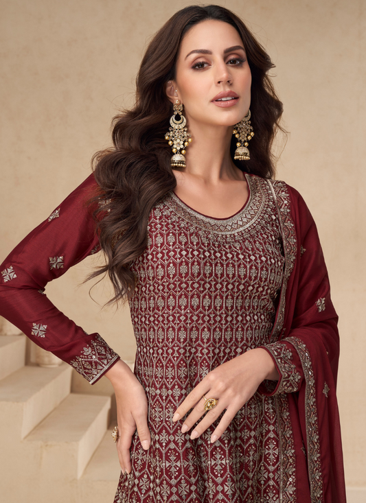 The sharara suit features wide-legged, flared pants that start at the waist and flow down seamlessly, creating a graceful and elegant look. Paired with a beautifully embellished kameez (top), a dupattas (scarf), and flattering sharara bottoms that are tight at the thighs and flare out at the bottom, this outfit exudes modern charm while retaining its traditional essence. It’s an ideal choice for Eid, weddings, and festive occasions, embraced by women worldwide for its fluidity and beauty.
