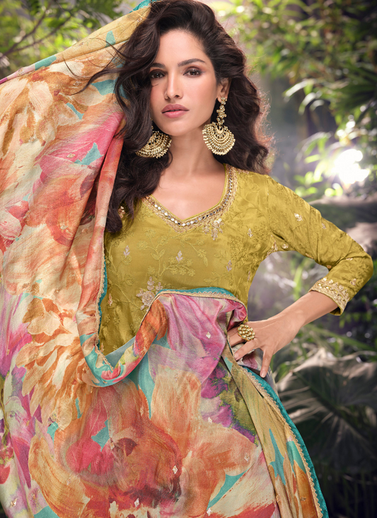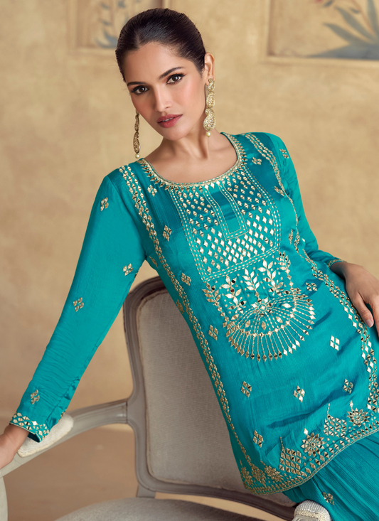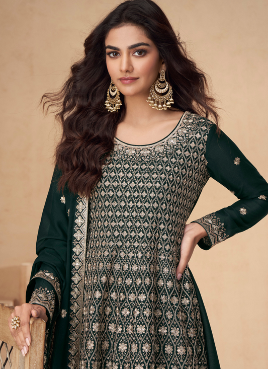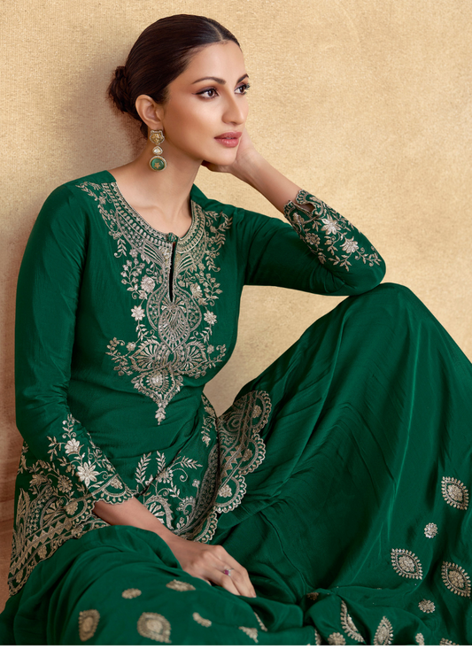 The Gharara suit offers a more structured, royal look. Featuring fitted pants up to the knee, where the flare begins, and dramatic pleats or embroidery at the knee, the gharara creates a sophisticated and regal silhouette. Paired with a short, intricately designed kurti (top) and a beautifully styled dupatta (scarf), the gharara suit is the epitome of elegance. This traditional outfit is often chosen for weddings, mehendi ceremonies, and cultural events, giving you a classic and regal appeal.