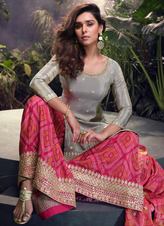 Discover the timeless elegance of both Sharara and Gharara Suits, two iconic Indian outfits that offer a perfect blend of tradition and modern flair. Originating from the Mughal era, these dresses have become favorites for weddings, parties, Eid, and festive celebrations. At Bindyaa, we offer a stunning collection of both sharara and gharara suits, tailored for every occasion, from grand weddings to intimate celebrations.
