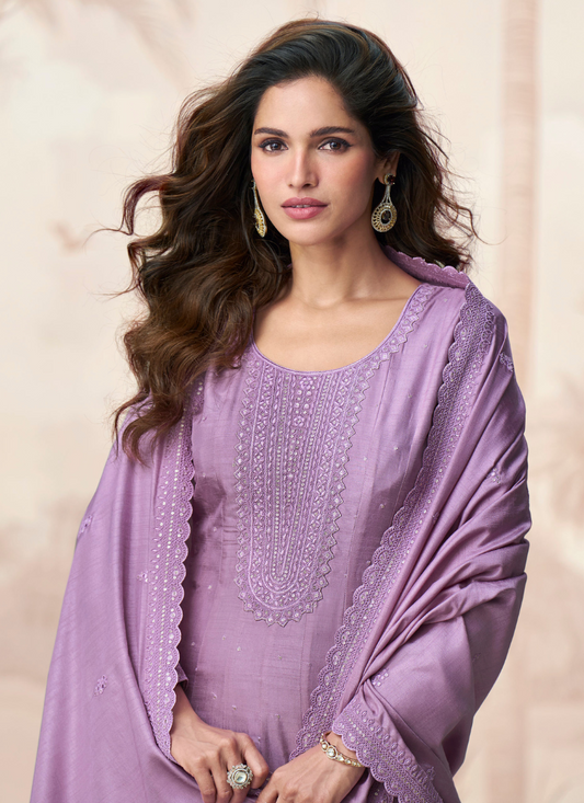 Purple Chinnon Embroidered Sharara Suit with Dupatta for Indian Wedding and Pakistani Festival – Zari and Sequin Detailing
