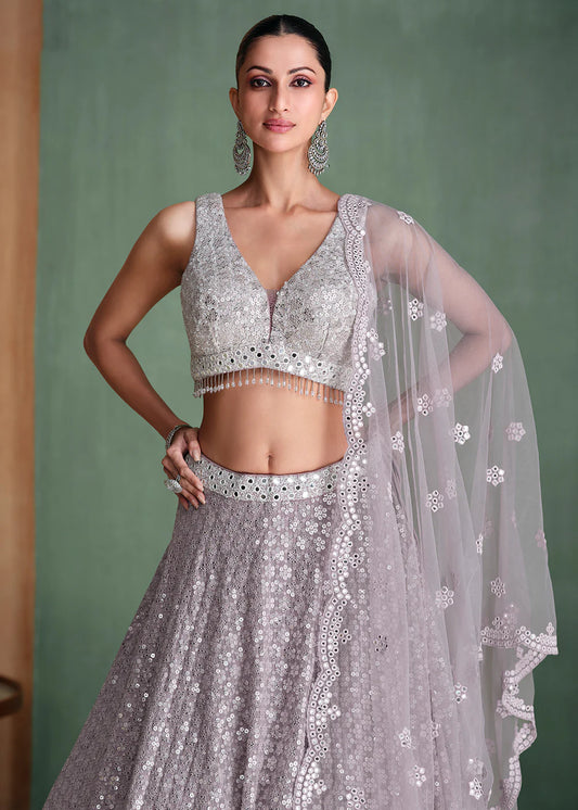 Stylish Grey Georgette Lehenga Choli with Embroidery for Parties