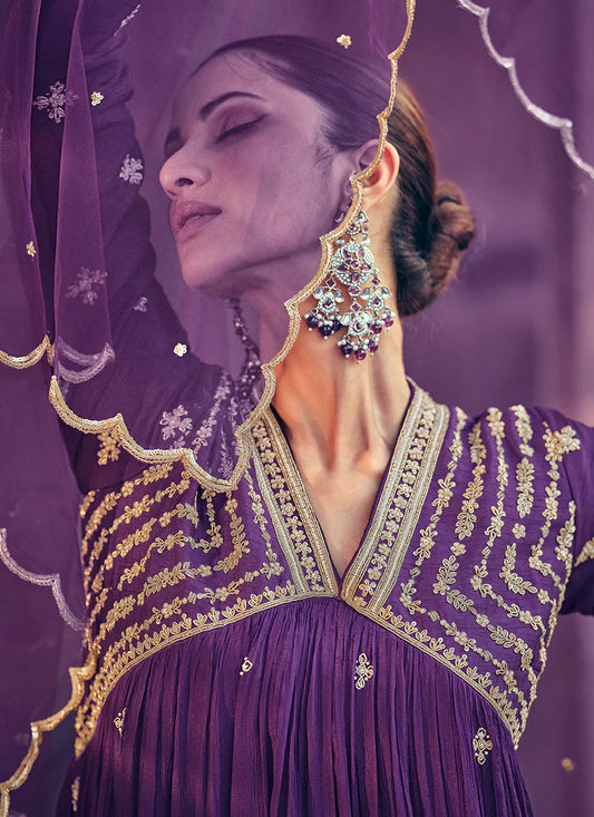 Designer Mauve Purple Sharara Suit with Detailed Embroidery