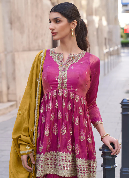 Pink and Mustard Palazzo Suits Perfect for Wedding and Festivals
