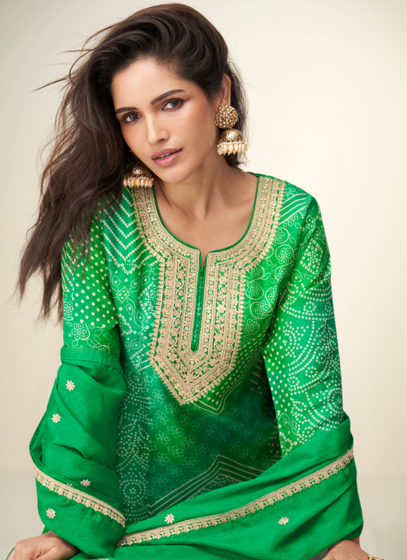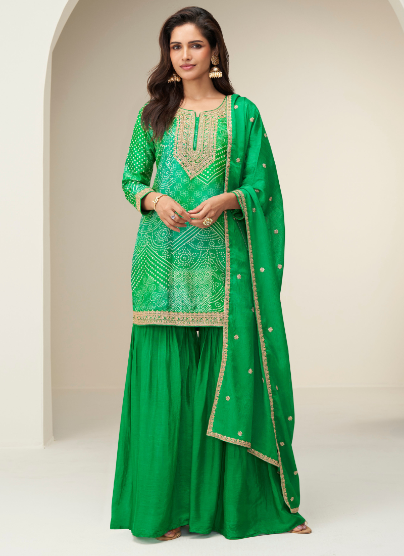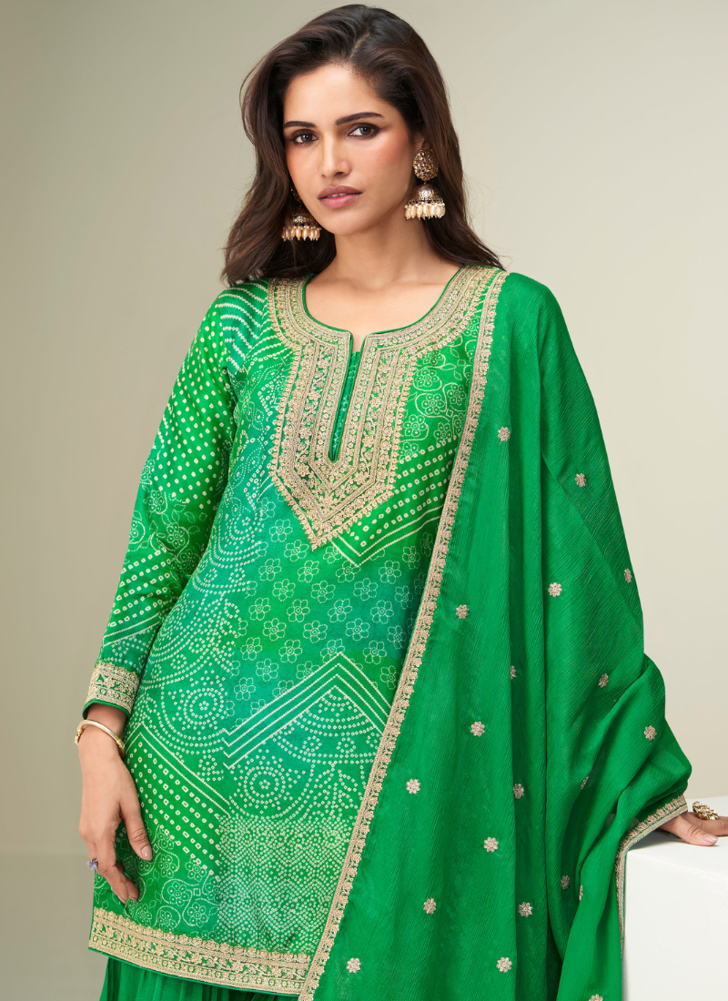 Designer Green Sharara Suit with Zari Embroidery with Dupatta for Indian Wedding and Pakistani Festival