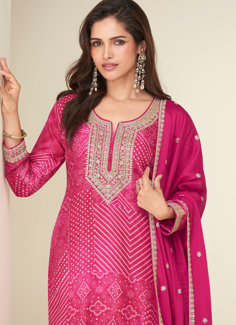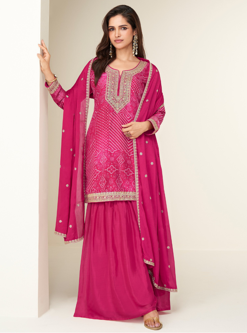 Designer Rani Pink Sharara Suit with Zari Embroidery with Dupatta for Indian Wedding and Pakistani Festival