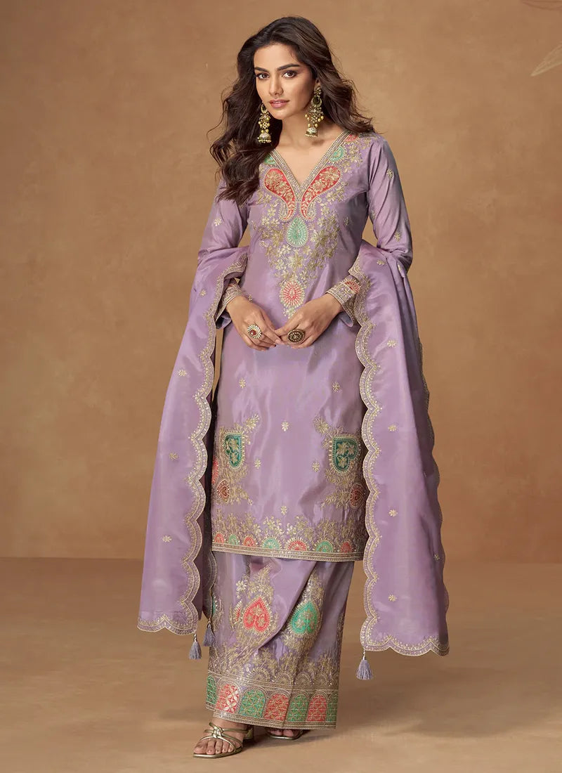 Lavender Simar Silk Palazzo Suit with Dupatta For Pakistani Wedding and Indian Festival