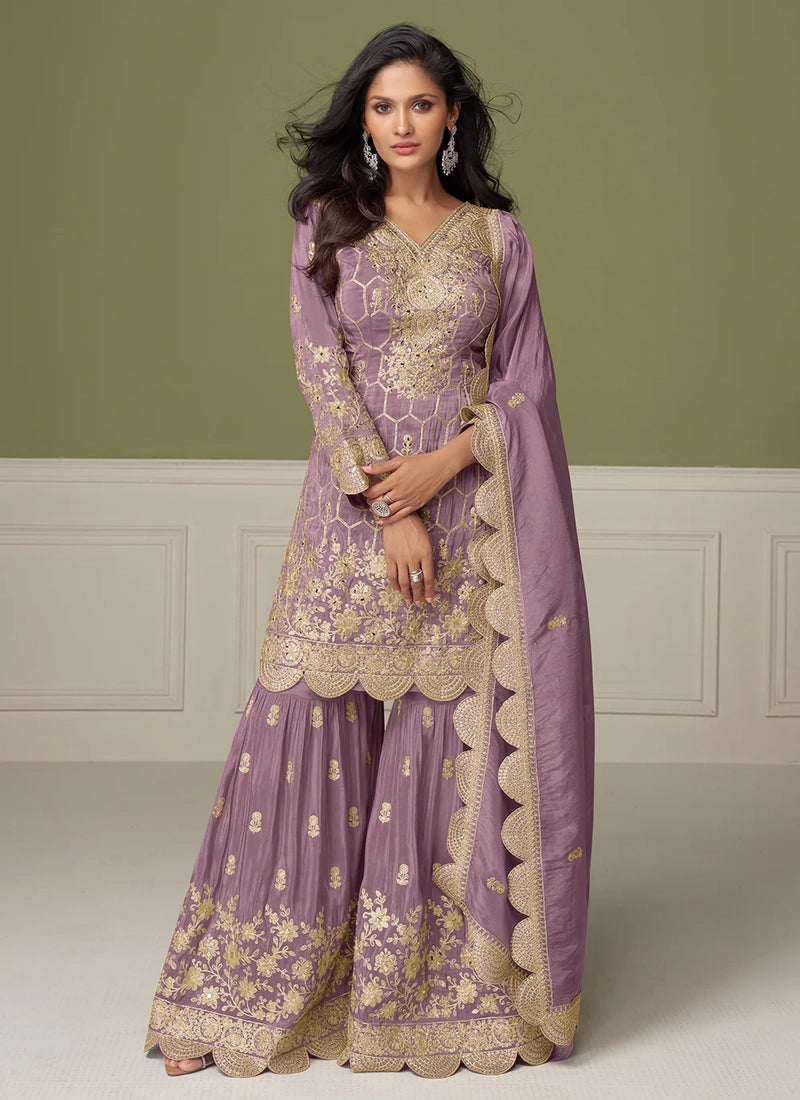 Lavender Simar Silk Sharara Suit with Dupatta For Indian Wedding and Pakistani Festival