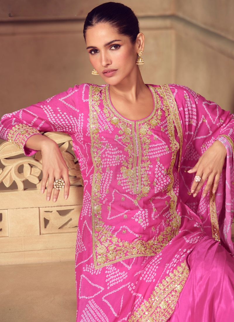 Pink Chinon Sharara Suit with Dupatta for Indian Wedding and Pakistani Festival