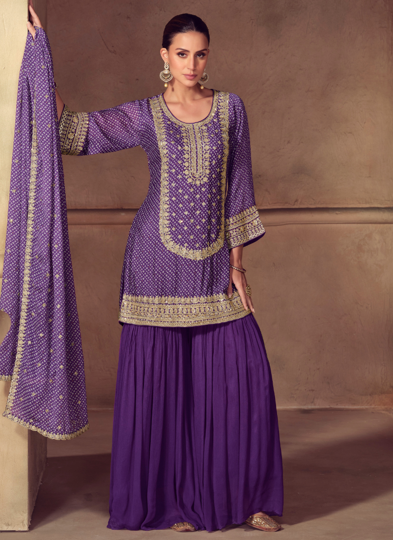 Purple Chinon Sharara Suit with Dupatta for Indian Wedding and Pakistani Festival